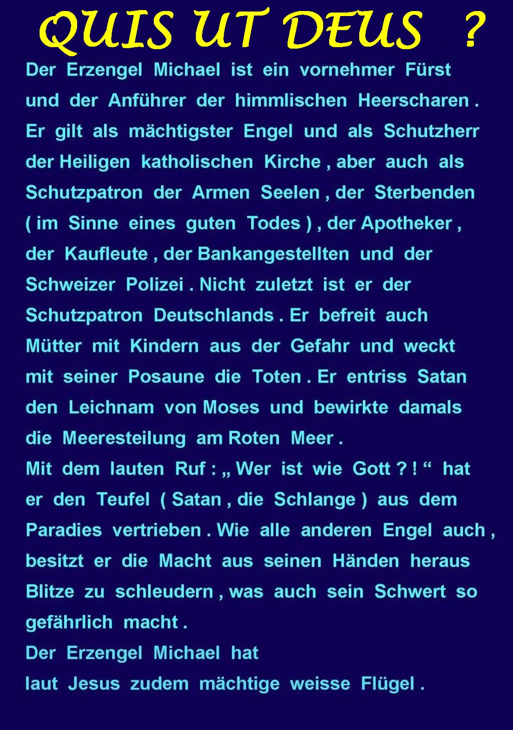 Heiliger Erzengel Michael - Schutzpatron der Katholischen Kirche  QUIS UT DEUS ? - Wer ist wie Gott ?